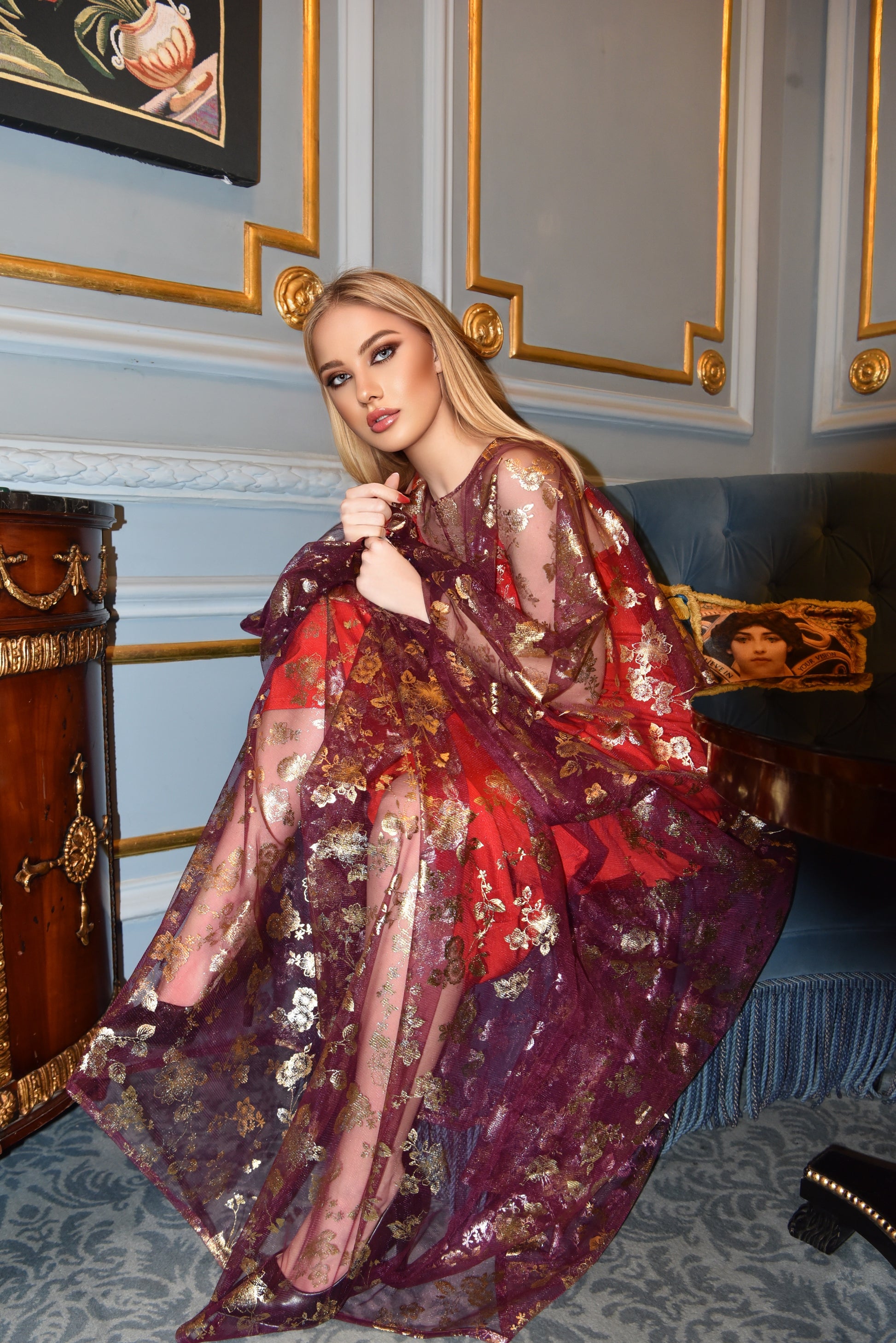 L’abito "Velvet Bloom Doppia Anima in Rosa" unisce eleganza e modernità in un design a doppio strato. La sottoveste in lycra elasticizzata rosa intenso valorizza la silhouette con comfort e fluidità, mentre il copriabito in tulle trasparente, arricchito da delicati ricami dorati, aggiunge un tocco di luce e raffinatezza. Ideale per la donna contemporanea che desidera esprimere femminilità e stile in modo sofisticato e versatile.